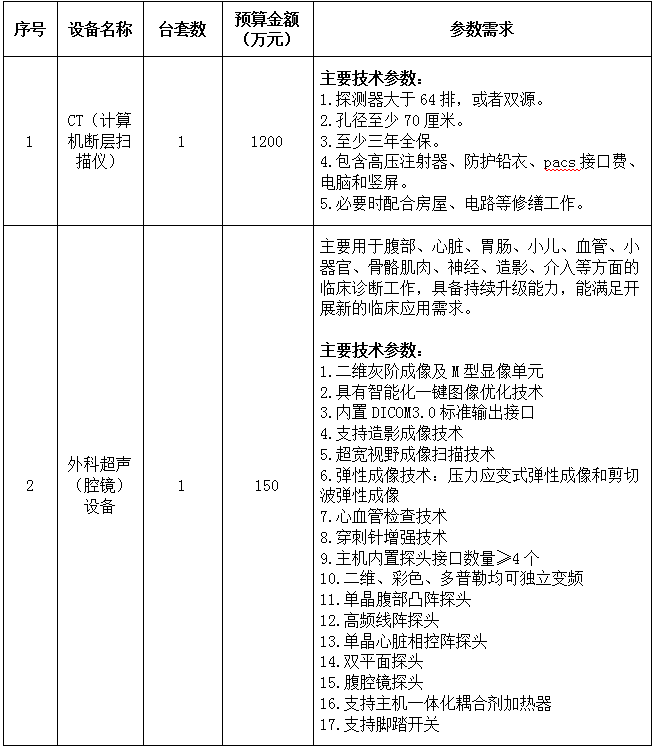 我院拟采购医疗设备如下,近日将组织相关专家进行论证。为了更好的了解各品牌产品的技术特点以及该设备在目前医疗市场的发展情况,欢迎符合我院要求的公司参与论证。具体内容如下: